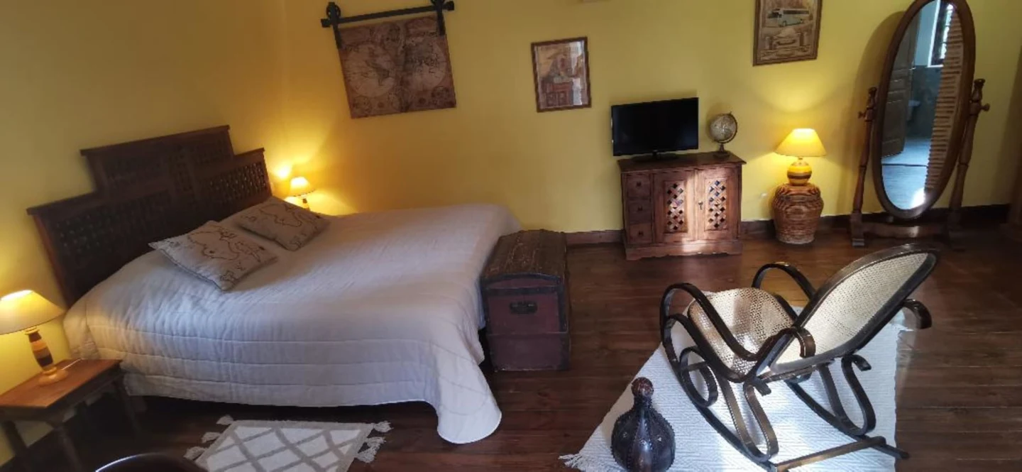 La pierre apparente, le parquet brut, le mobilier chiné d’ici et de là, et les tableaux à l’effigie des différents moyens de transports, rappellent le charme des anciens comptoirs coloniaux.