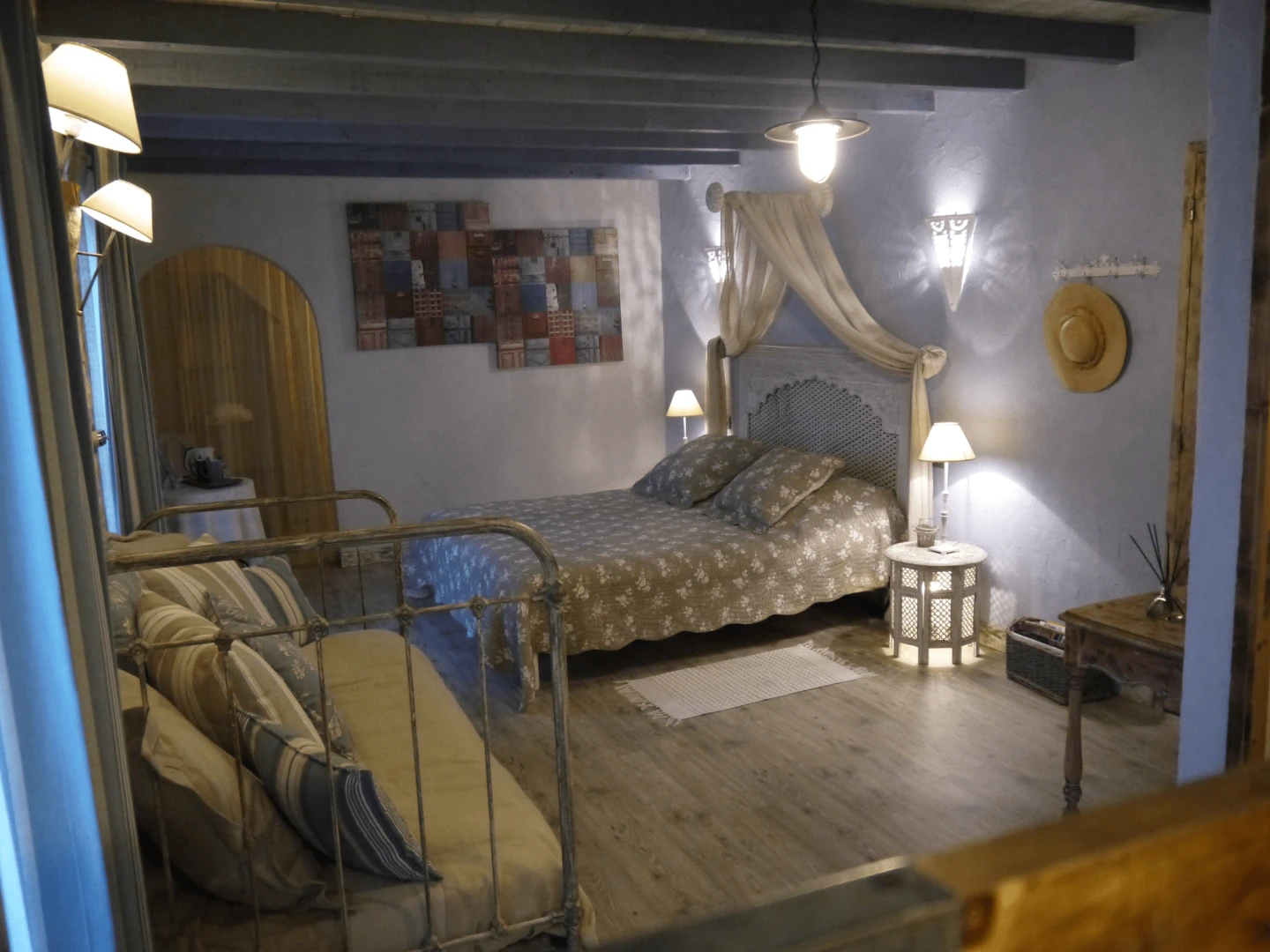 Située au rdc de notre demeure de caractère, du XVIIIe siècle, cette suite allie le bois, la pierre et les tissus anciens, dans une ambiance « campagne chic » et « champêtre », mais sans oublier le confort d’aujourd’hui.